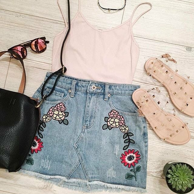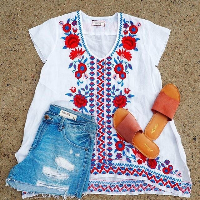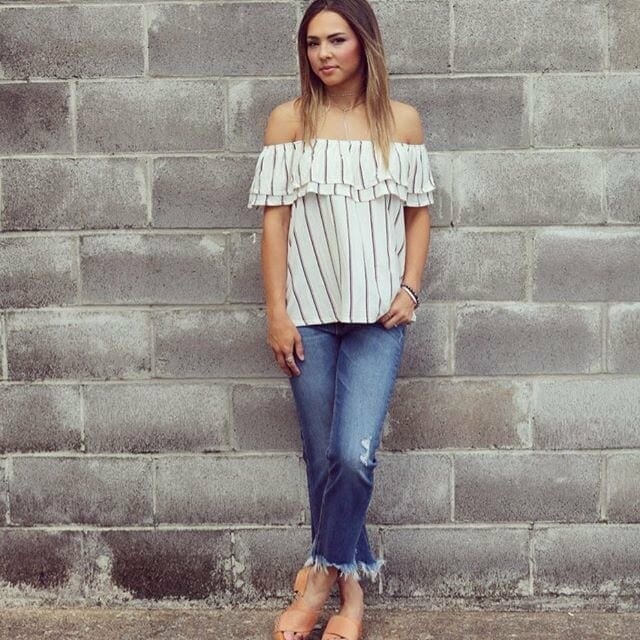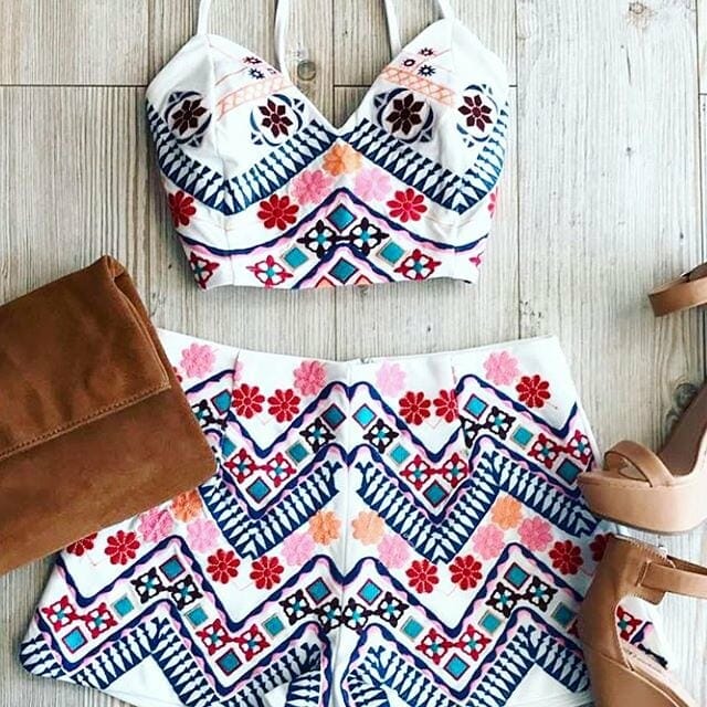 We’re seeing lots of trendy pieces, mixed in with summer staples. Long, beaded earrings and pom poms are definitely having a big moment right now, as are stripes, two-piece sets, and feminine pieces. Pair those with distressed denim shorts, wedges and a flowy duster and you’ve got yourself a summer outfit that all your friends will be envious of!