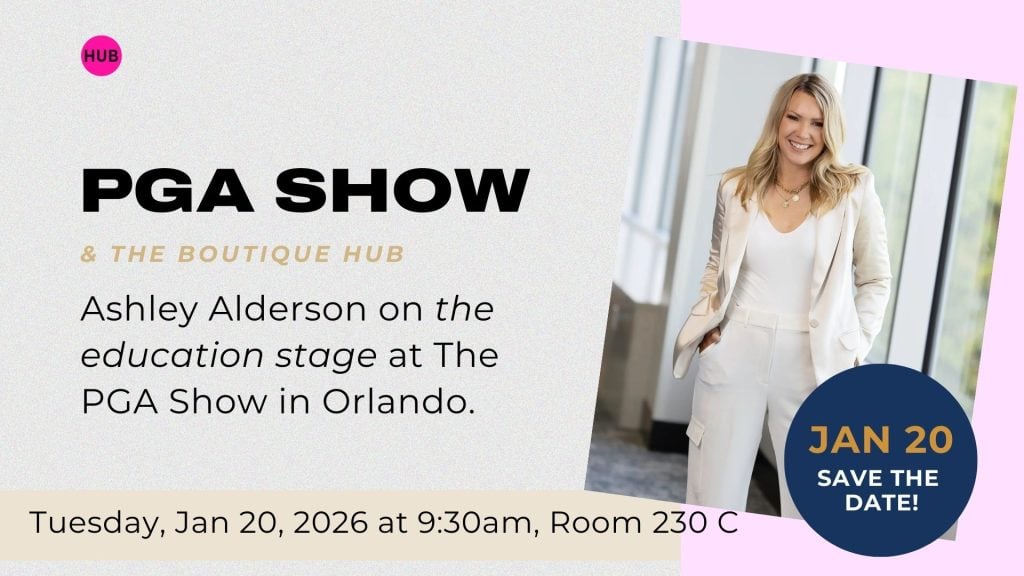The Boutique Hub team will be on site at the PGA Show on January 20th. Look for Ashley Alderson on stage at 9:30am. She’d love to meet you and connect you with exciting product lines and personalized support!